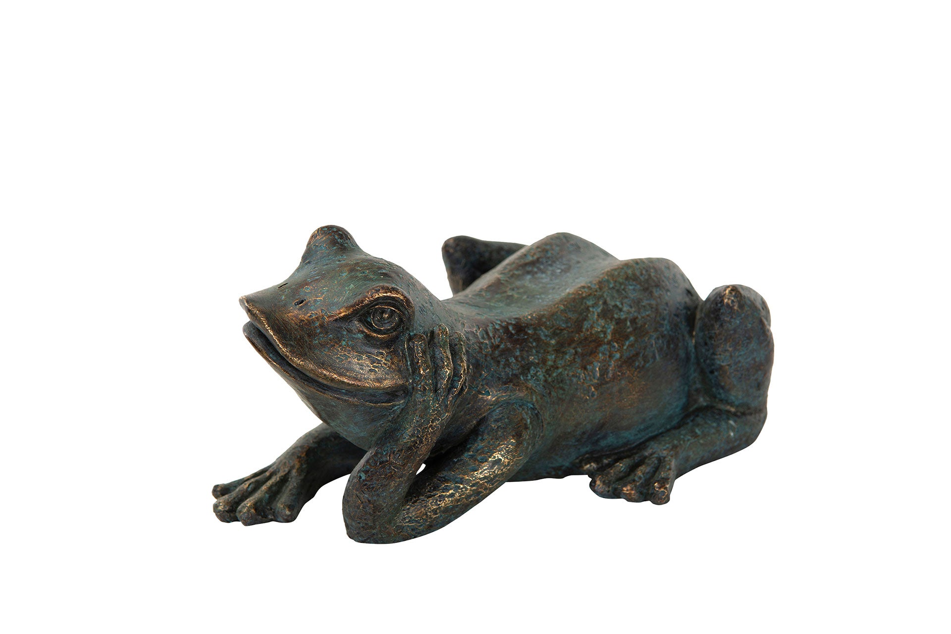 Denne sjarmerende frosken i antikk grønn finish gir både personlighet og ro til hjemmet. Frosken Fritjof sitter tankefull og stolt i sin egen verden – en unik interiør detalj for deg som liker særpreg og stemningsfulle elementer.